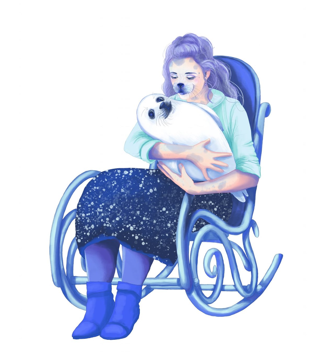 La première partie du livre rassemble mes illustrations numériques et les textes poétiques de Valentin Rotureau, mon amoureux. Nous y avons créé un univers doux et aimant, qui invite à la cohabitation harmonieuse des êtres animaux et humains.