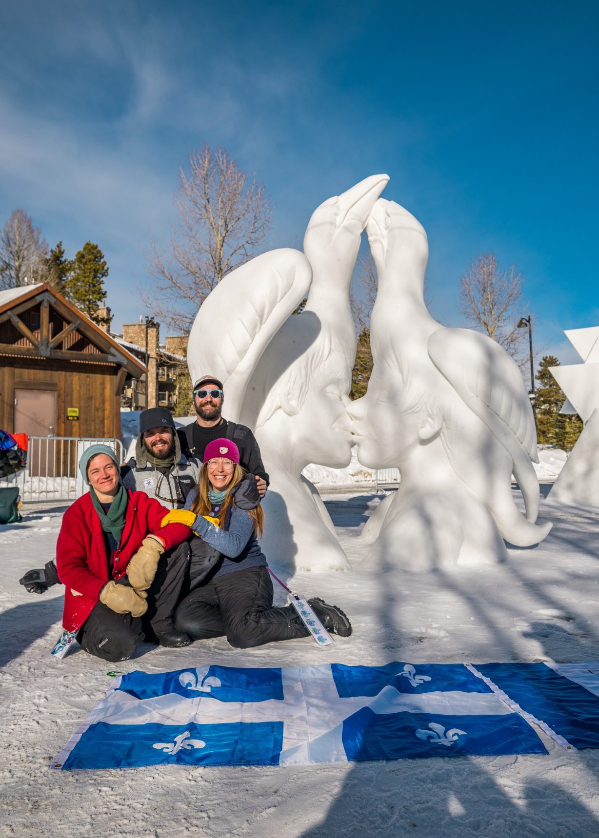Et puis, il y a bien sûr toutes les aventures de neige vécues ces dernières années. On a sculpté de la neige un peu partout, et cette année, on a eu la chance de représenter le Canada lors d’un événement international au Colorado en sculptant une œuvre nommée “Les amoureux fous”.